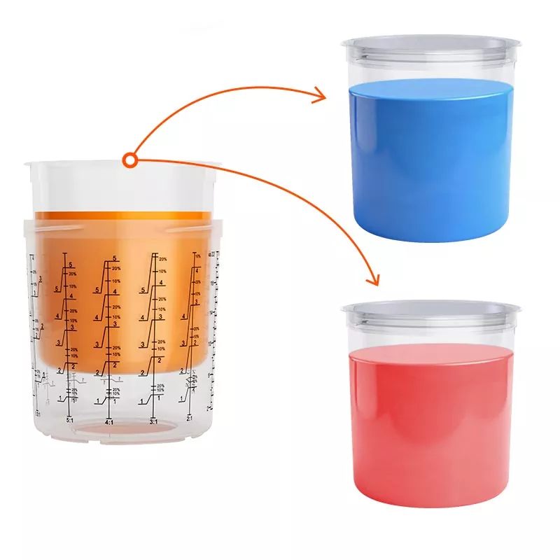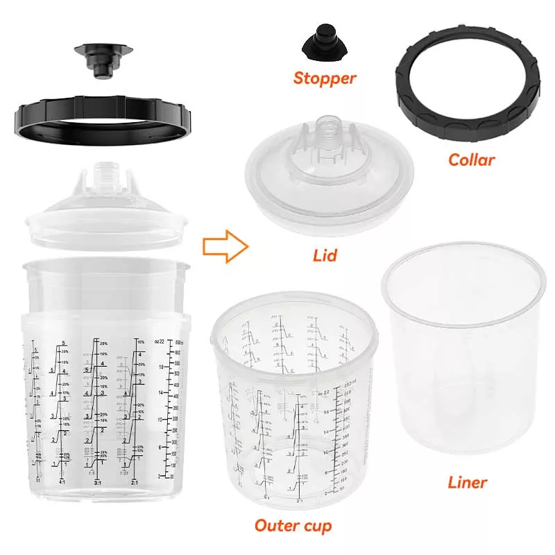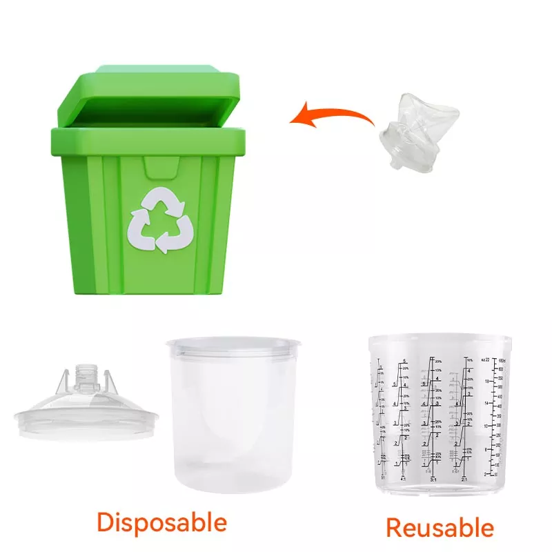 Sistem posod za barvo za enkratno uporabo združuje funkcije mešanja, filtriranja, pršenja in shranjevanja v eni enoti. To ne le poenostavi pripravo pred barvanjem, ampak tudi prihrani stroške mešalnih skodelic in papirnatih lijakov, zaradi česar so odlična izbira za prihranek časa pri pripravi in izboljšanje učinkovitosti pršenja.