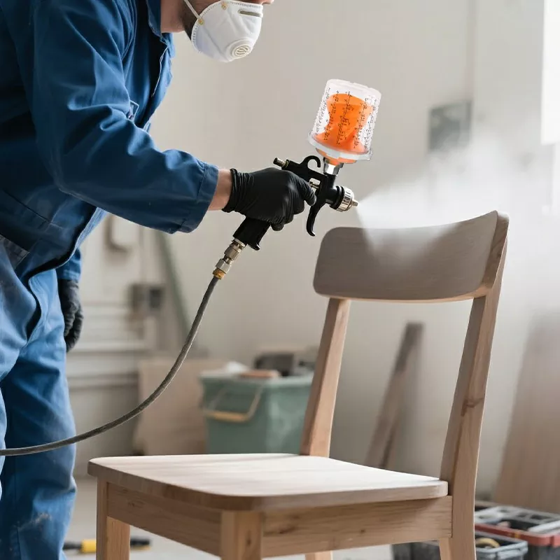 Nepravilna struktura pohištva in lesa je potrebna pogosto nagibanje razpršilne pištole med brizganjem. Skodelica za enkratno uporabo Ayspat se med brizganjem vrti 360 °, da se prepreči kapljajočo barvo, pokrov pa se lahko večkrat upogne v več smereh, da se sprejme različne kote škropljenja. Idealen je za brizganje PU/NC barvo na lesena vrata, omare in pohištvo iz masivnega lesa.