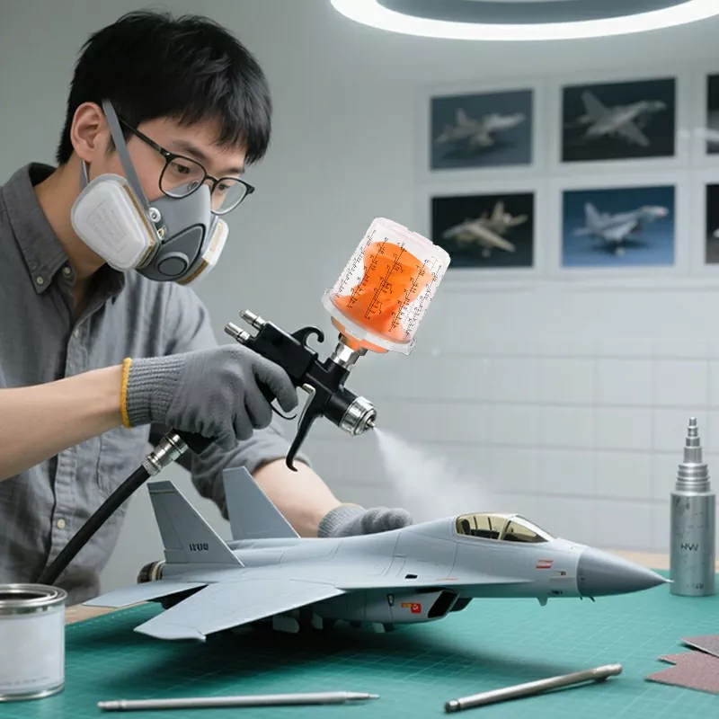400ml skodelice za razpršilo za enkratno uporabo je lahka in priročna, kot nalašč za uporabo z mini brizgalnimi puškami. Njegova funkcija hitre spremembe barve je idealna za barvanje modelov s kompleksnimi in raznolikimi barvami. Natančno brizganje z razpršilcem Ayspat za enkratno uporabo izboljšuje kakovost modela, zaradi česar je idealen za barvanje vojaških modelov, figur GK in freske.
