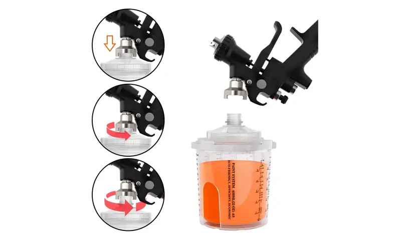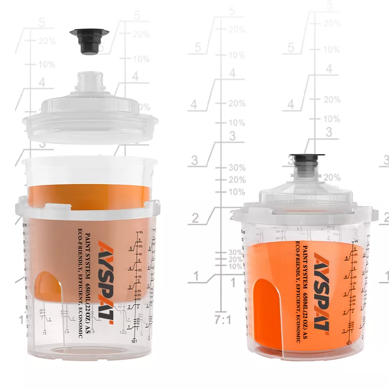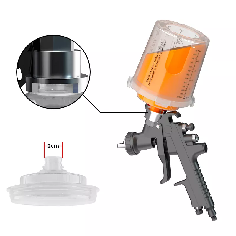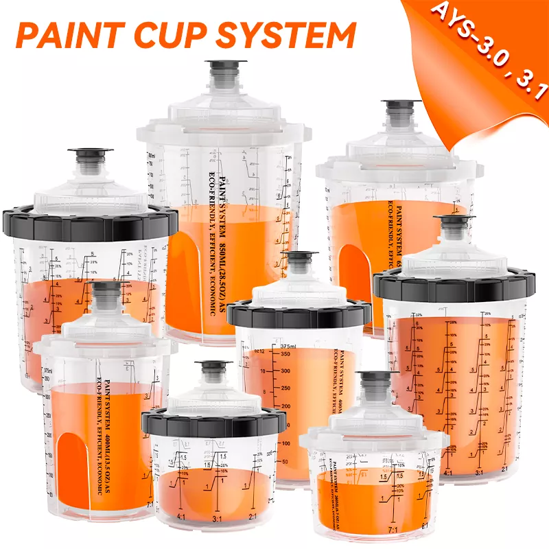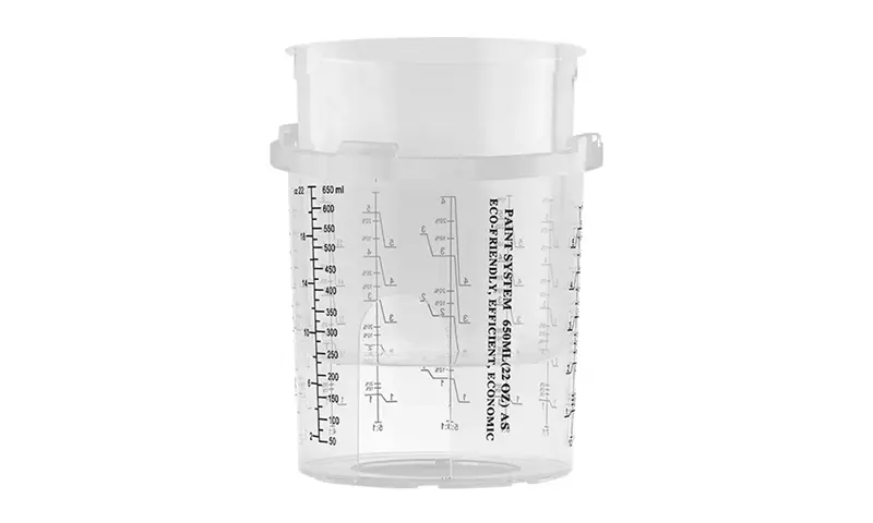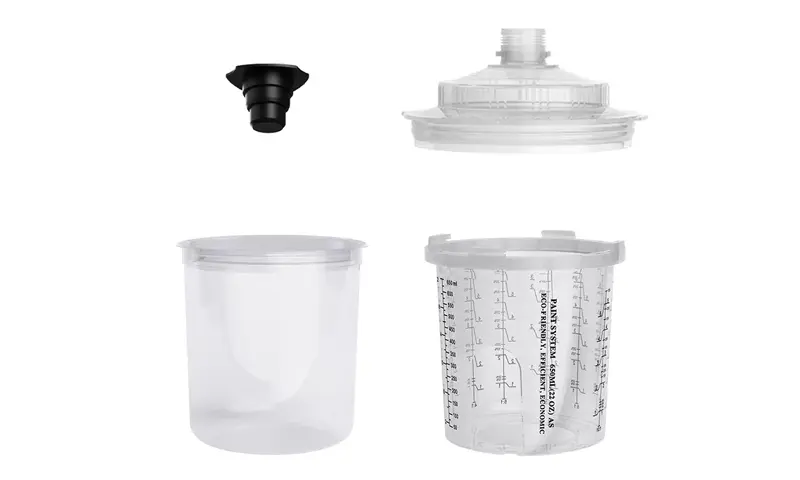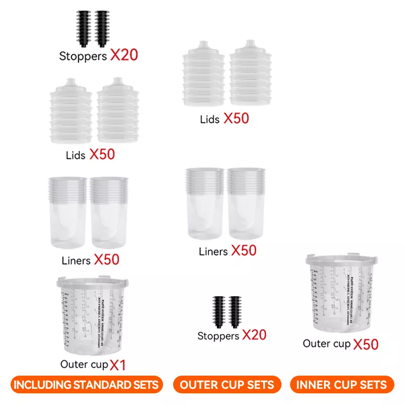 Pokal za brizgalno pištolo za enkratno uporabo ponuja različne možnosti zmogljivosti (vključno z 200 ml, 400ml, 650ml, 850 ml), ki lahko ustrezajo različnim potrebam po brizganju od popravil 1 plošče do 4 plošč in zmanjšajo frekvenco zamenjave skodelic.