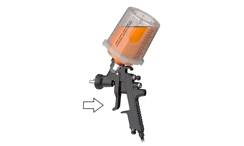 lf je ostala barva, jo zatesnite z zamaškom, obrnite skodelico za razpršilo in ga shranite za nadaljnjo uporabo