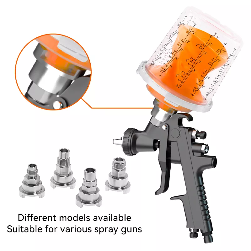 Ponujamo adapterje za različne blagovne znamke brizgalnih pušk, da zagotovimo združljivost in stabilnost skodelice za razpršilo z različnimi znamkami razpršilnih pušk.
