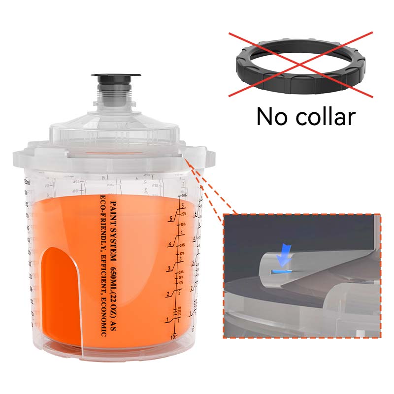 Ovratnik ,, ki tvori tesno povezavo med skodelico in pokrovom, je že dolgo ključna sestavina v sistemih za razpršilne skodelice za enkratno uporabo. Med zasedenimi slikarskimi sejami slikarji pogosto izgubijo ali poškodujejo ovratnik, kar prepreči, da bi razpršilna skodelica za enkratno uporabo pravilno delovala, kar ustvarja pomembne izzive.