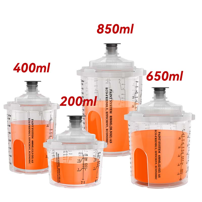 - Ays3.1Razpršilna skodelica za enkratno uporaboje izdelan iz materialov za PP in PE, odporen proti topilu in odporen proti udarcem. Podpira široko paleto premazov, vključno z barvo iz lateksa, barvo na osnovi olja in lakom, kar učinkovito odpravlja težave s korozijo, ki so običajno povezane s tradicionalnimi razpršilnimi skodelicami.